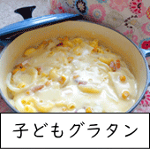 こどもと一緒に作れるくらい簡単で、子どもも喜ぶホワイトソース系の味です。鍋で大きく作って次ぎ分けて食べます。